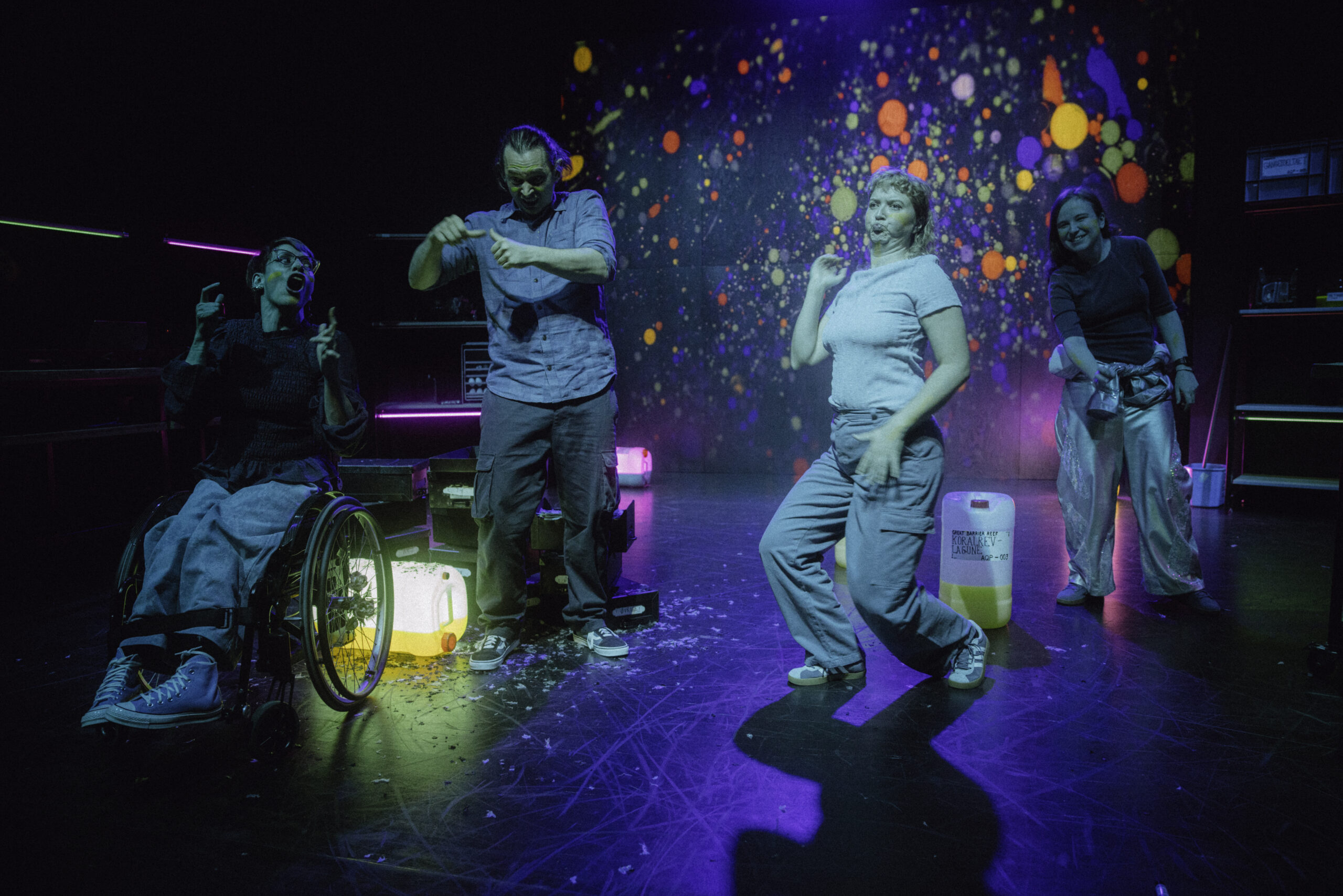 På scenen udforsker medvirkende deres egne oplevelser med fordomme, manglende tilgængelighed og samfundets syn på det “forskellige” – sammen med symbolikken i vandets bevægelser og vandelementets kunstneriske udtryk. Forestillingen leger med sprog, hvor tegnsprog, lyd, billede og bevægelse mødes i et poetisk flow og skaber en oplevelse, der både er visuel, følelsesmæssig og inkluderende.