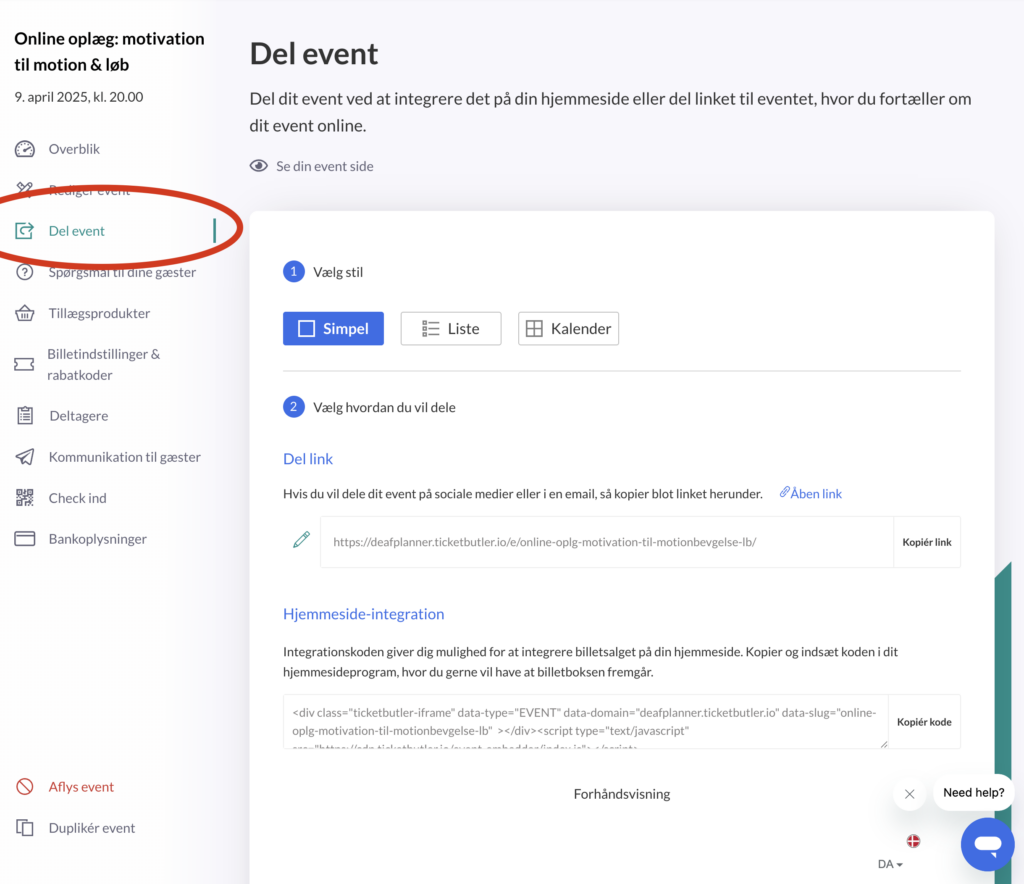Som arrangør kan du godt sælge billetter til din begivenhed. Deaf Planner bruger TicketButler som billet-leverandør. Det betyder, at du skal oprette billetten hos dem. Derefter får du en kode til selve billetten, som du så skal indsætte i Deaf Planner.